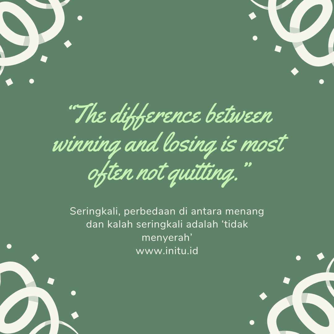 - “The difference between winning and losing is most often not quitting.” – Seringkali, perbedaan di antara menang dan kalah seringkali adalah ‘tidak menyerah’.